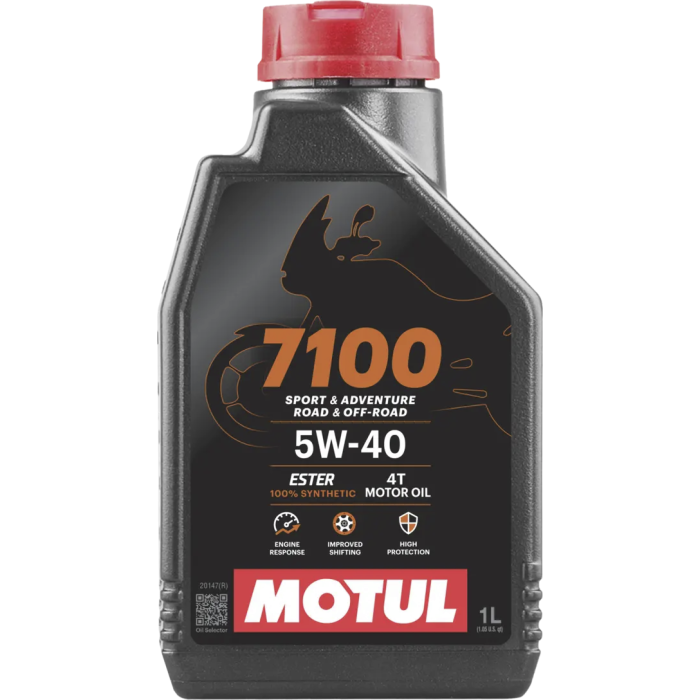 Application Engine lubricants Engine Type 4-Stroke Product Type 7100 4T &; 710 2T Quality 100% Synthetic Product Range Motorcycle Viscosity 5W40 API Standards API SN JASO Standards JASO MA2 100% synthetic 4-Stroke lubricant – Ester Technology – Meets bike manufacturer specifications, especially BMW, KTM and MV AGUSTA which recommend SAE 5W40. Excellent shear resistance protecting engine and gearbox. Smooth shifting. Meets JASO MA2 specifications for optimal wet clutch performance. Suitable for catalytic converters.