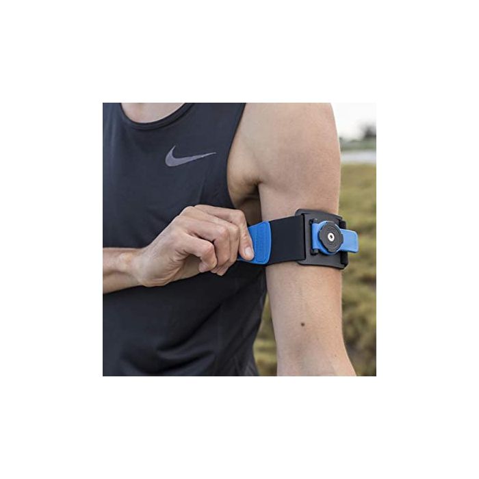 Спортивная повязка Quad Lock удобно и надежно надевается на руку или поверх спортивной одежды.