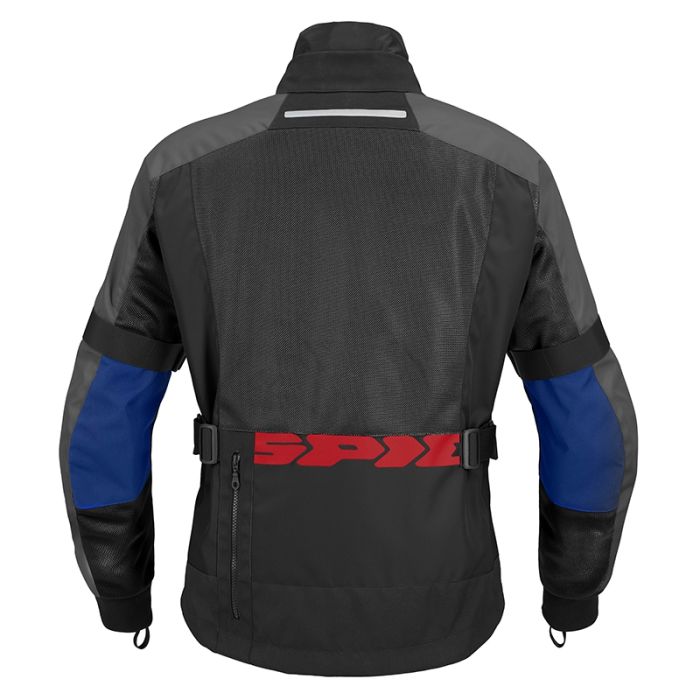 Имеются отражатели 3M® Scotchlite® для превосходной видимости в ночное время, а также имеется молния, соединяющая куртку с брюками для дополнительной безопасности. Чтобы куртка идеально сидела по размеру, она оснащена встроенной системой регулировки Spidi Ergofit, неопреновым воротником, и эластичными трикотажными манжетами, которые можно легко носить поверх или под перчатками. Так же предусмотрены 2 водонепроницаемых наружных кармана.